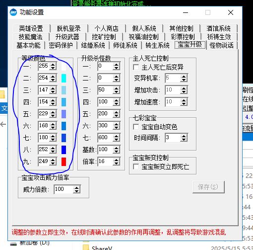 参数设置位置:M2引擎 选项中的 功能设置 选择宝宝升级中的 等级颜色